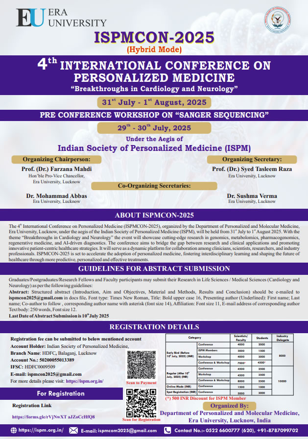 Society aims to promote and advance the field of personalized medicine in India through research, education, and collaboration.